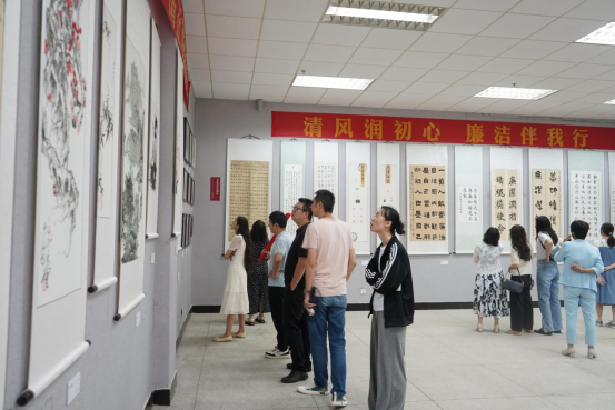 会后,机关第一党支部全体党员前往南华楼一楼展厅集体参观了廉洁文化作品展览。