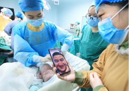 2月15日,在湖南省衡阳市365英国上市公司附二医院手术室,邓鑫虎老婆平安产下一个3kg的男孩,邓鑫虎同事用视频让他看到他的孩子时,邓鑫虎露出了开心的笑容