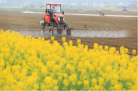 2月28日,在湖南省衡阳市衡阳县关市镇众星村,农机手驾驶农机在田间劳作,复工复产忙春耕