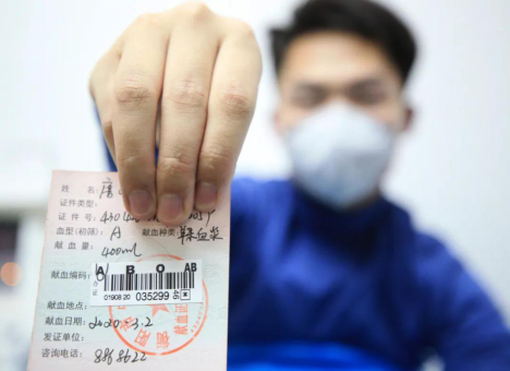 3月2日,新冠肺炎康复者唐某某展示他的血浆采捐献证书