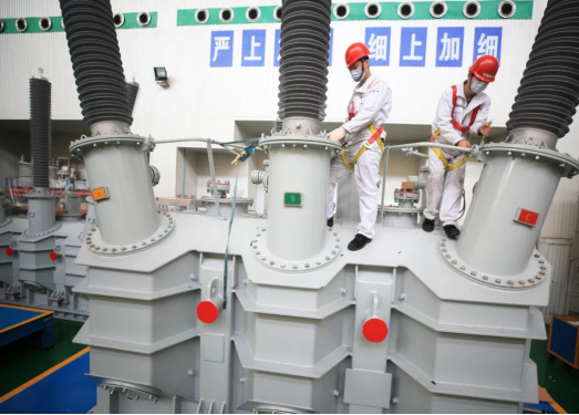 3月19日,在特变电工衡变公司装配车间,工人们在对产品进行下线前最后的安装调试