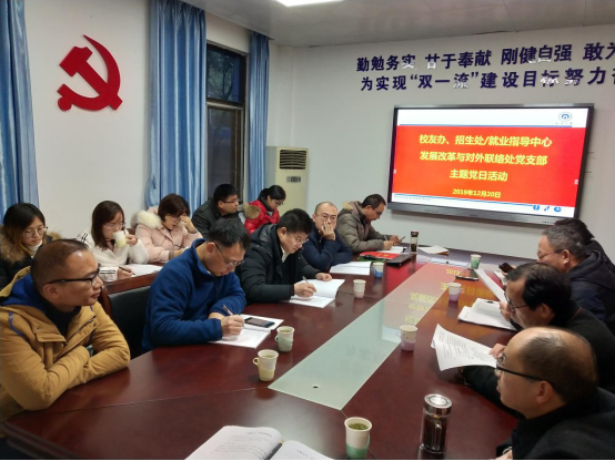 12月20日,按照机关党委统一部署,校友办、招生处、发展改革与对外联络处党支部全体党员在党员活动室举行主题党日活动。会议由党支部书记彭新和同志主持。