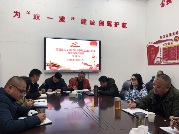 根据校宣传部和机关党委的统一安排,保卫处党支部结合实际,于12月25日下午3:00在会议室开展党员主题日活动,会议由吴莎莉主持。