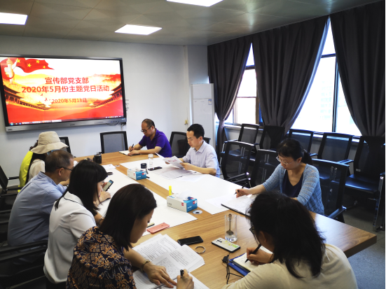 5月18日上午,宣传部党支部全体党员在西苑一办五楼会议室召开主题党日活动。活动由党支部副书记汪波主持。